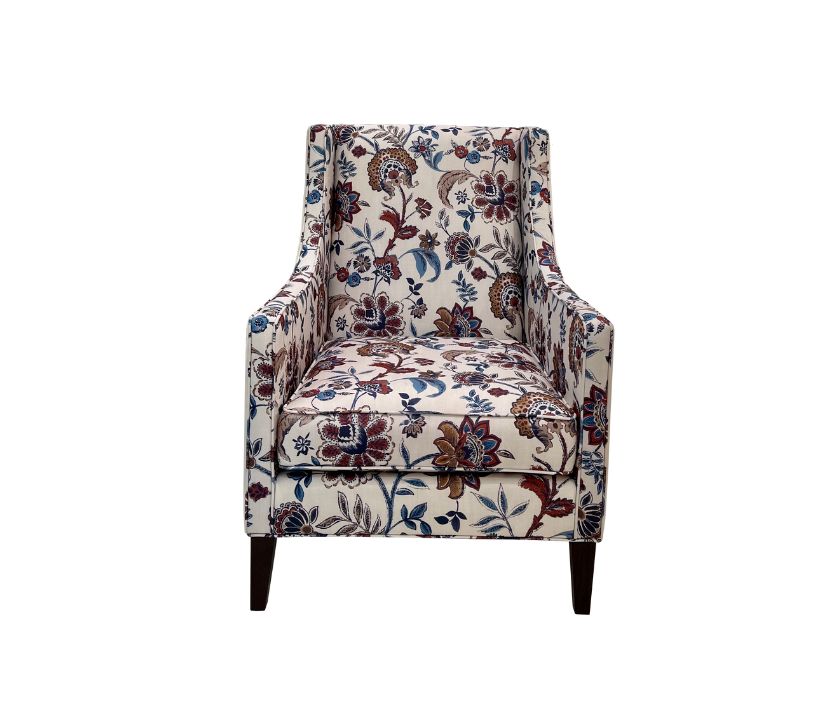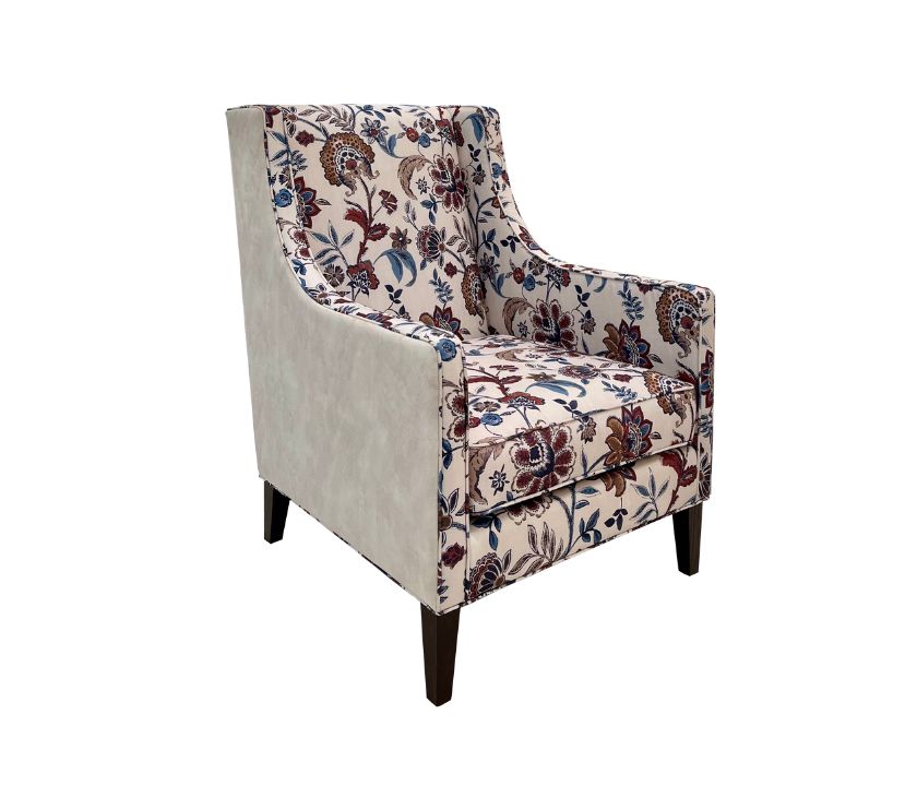 Luxury armchair upholstered in premium imported fabric, featuring elegant floral patterns.