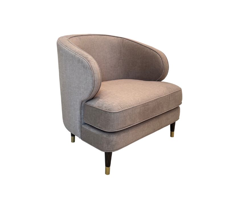 Elegant lounge armchair upholstered in premium fabric, featuring a softly curved silhouette that reflects modern sophistication.