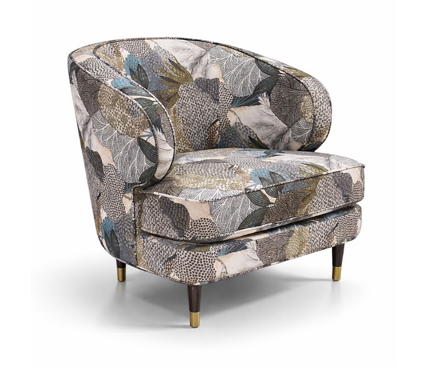 A premium fabric-upholstered lounge chair from Australia, featuring soft rounded lines and a floral pattern that delivers a refined, modern aesthetic.