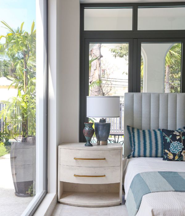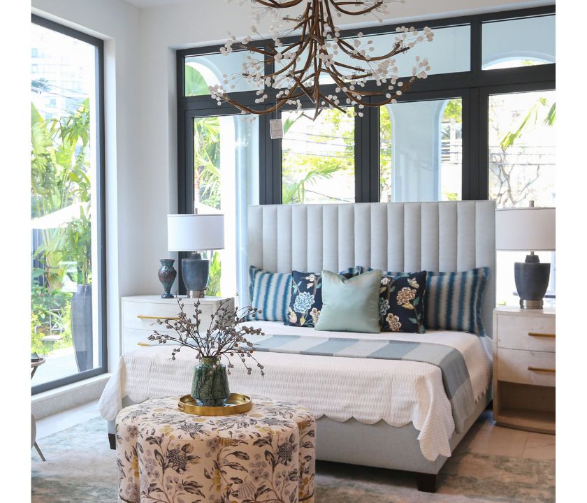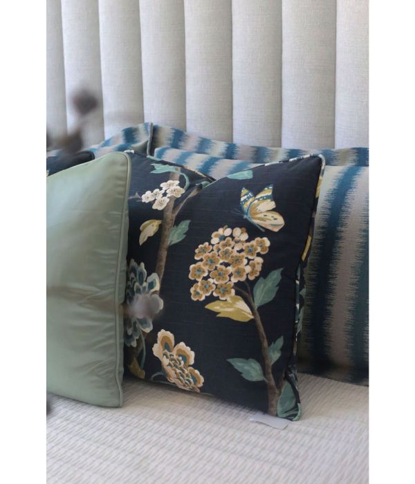 Premium upholstered bed crafted with high-quality fabric imported from the USA, featuring renowned Robert Allen textiles.