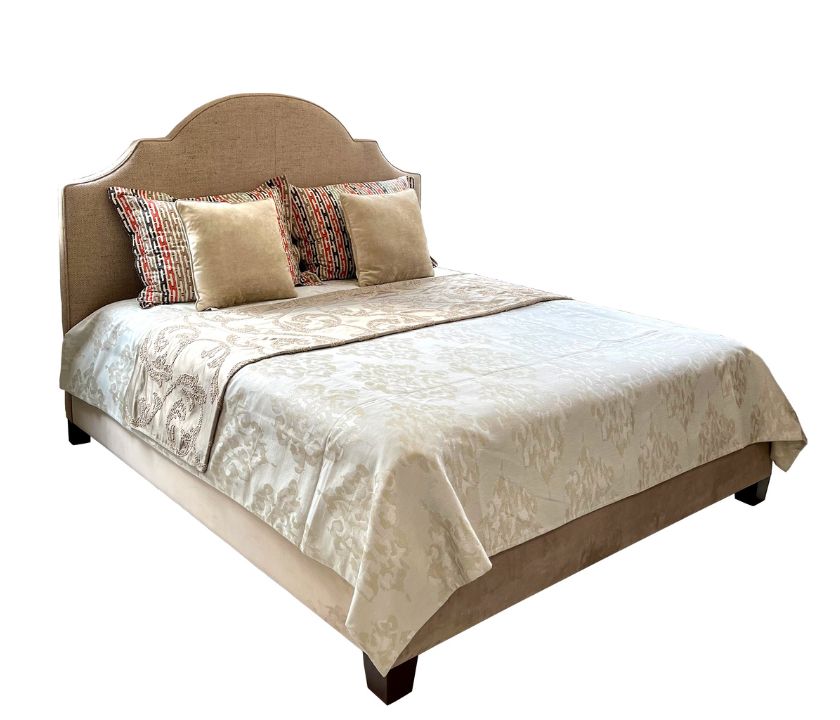 Premium upholstered bed crafted with high-end fabric imported from Belgium, offering refined elegance and luxurious appeal.