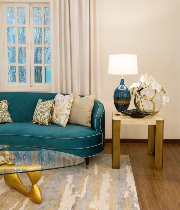 The Emerald living room set, with its contrasting emerald green and gold tones, is a classic combination that creates a striking and vibrant space.