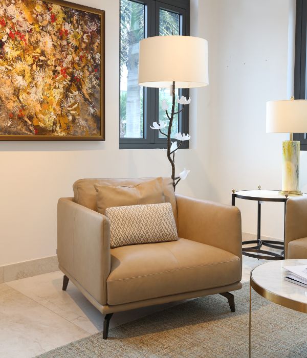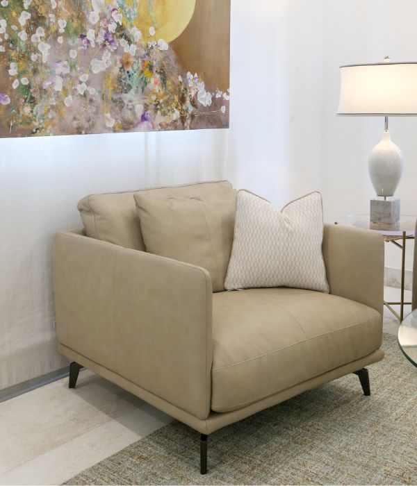 The Stanza sofa offers an exceptional level of comfort with its multi-layer urethane foam cushions topped with natural feathers, delivering a soft, cloud-like feel with perfect support. Wrapped in premium Italian leather, smooth and durable over time, it’s framed by a matte black metal structure that embodies both strength and elegance.
