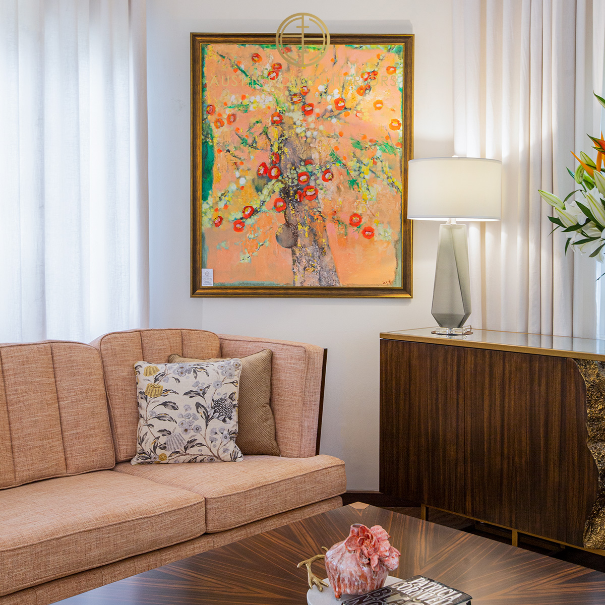 A special highlight is the Spring Sunshine painting by artist Huong Thi Thanh, bringing a touch of nature and sophistication, making the living space more soulful.