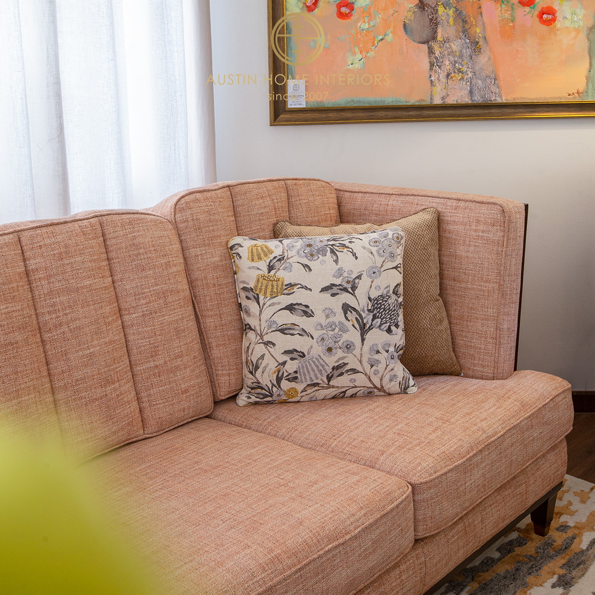A warm living room named Spring Sunshine – the perfect harmony of modern style and artistic beauty that stirs emotions.