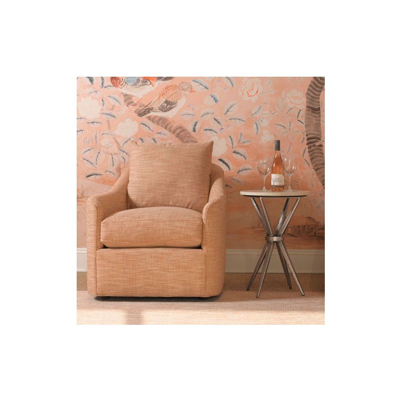 Các chân bàn kim loại thon dần với dáng góc cạnh được liên kết tại trung tâm bằng một vòng kim loại, nâng đỡ mặt bàn tròn dày 5/8 inch được ốp đá cẩm thạch Tây Ban Nha.