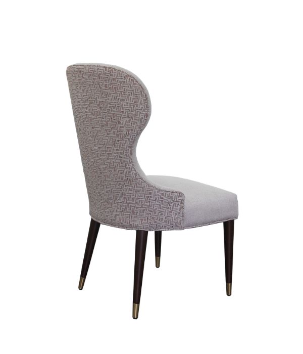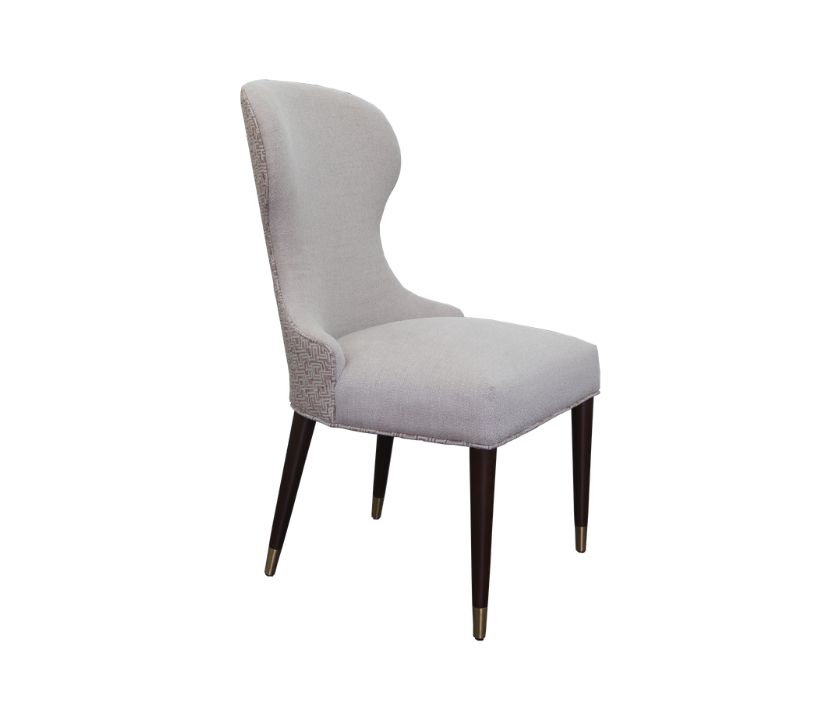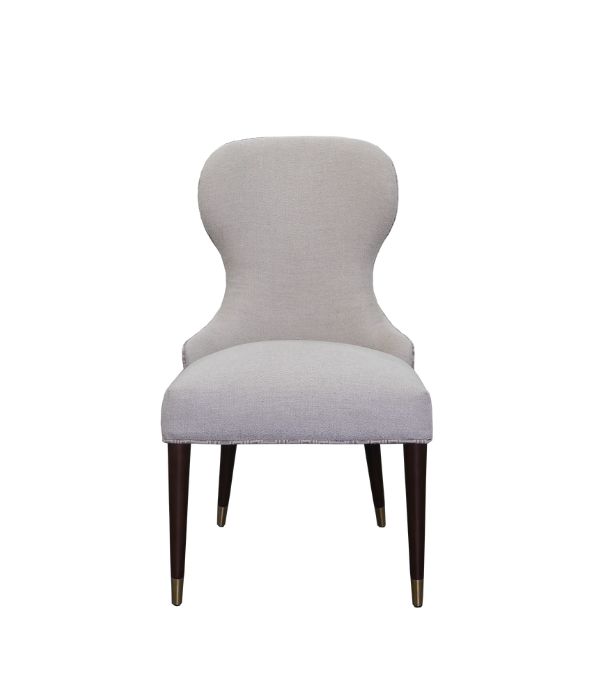 Ghế ăn Lara bọc vải cao cấp với thiết kế lưng tựa cong mềm mại, tạo cảm giác ôm lưng và thoải mái khi ngồi. Sự kết hợp tinh tế giữa bề mặt vải trơn và phần lưng họa tiết trang nhã mang đến vẻ đẹp thanh lịch, hiện đại. Chân ghế gỗ chắc chắn, điểm nhấn chụp kim loại sang trọng, phù hợp cho không gian phòng ăn gia đình.