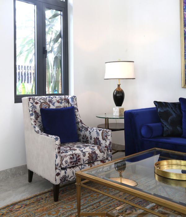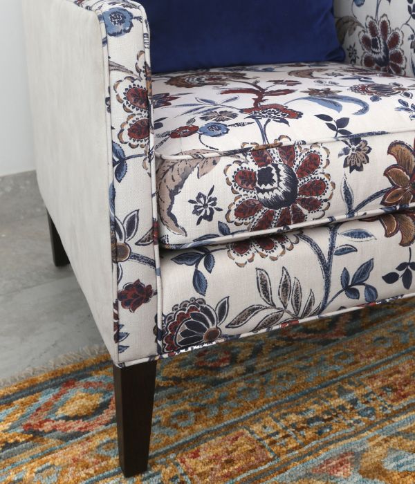 Ghế bành bọc vải nhập khẩu cao cấp, thiết kế thanh lịch với họa tiết hoa tinh tế.