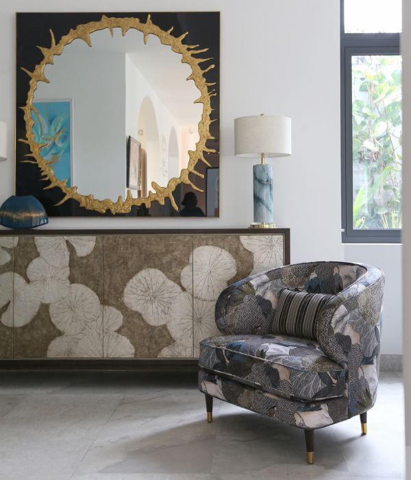 Ghế bành thư giãn bọc vải cao cấp từ Úc, thiết kế bo tròn mềm mại với họa tiết hoa mang đến vẻ đẹp tinh tế và hiện đại.