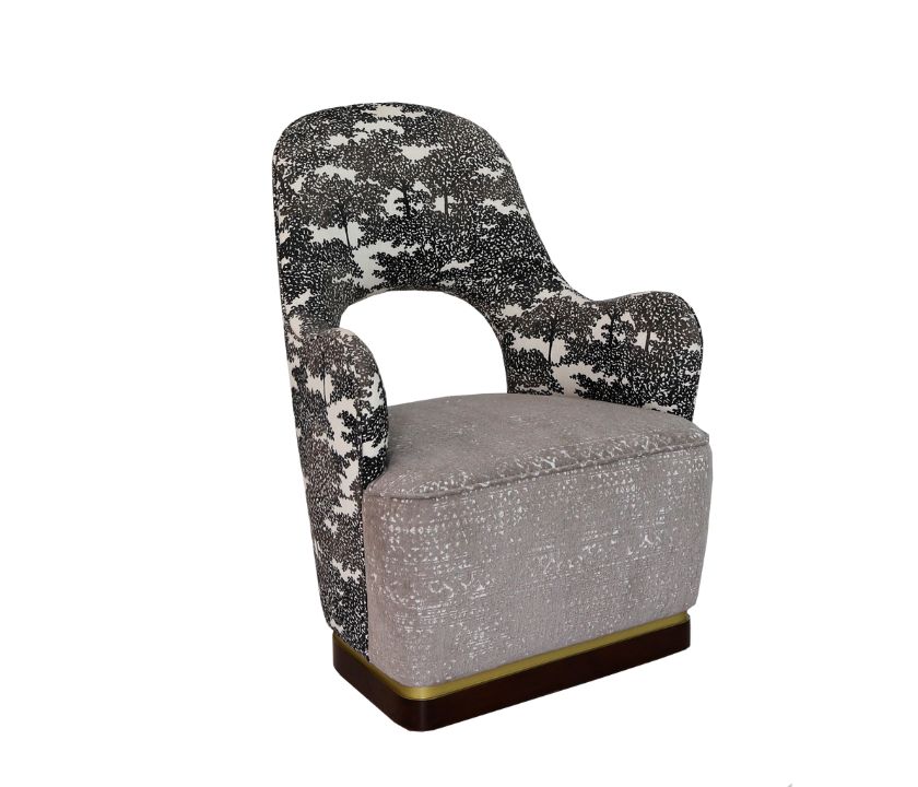 Ghế được phối hai chất liệu vải cao cấp từ thương hiệu Robert Allen (Mỹ) với 90 năm lịch sử.