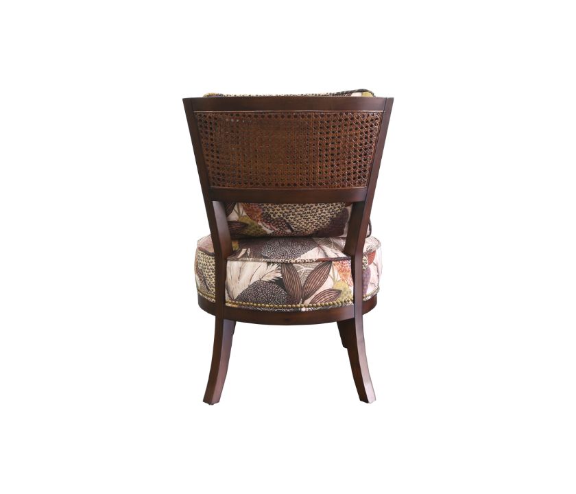Ghế Rattan bọc vải thương hiệu cao cấp Trend, với đệm ngồi êm ái, họa tiết nghệ thuật nổi bật