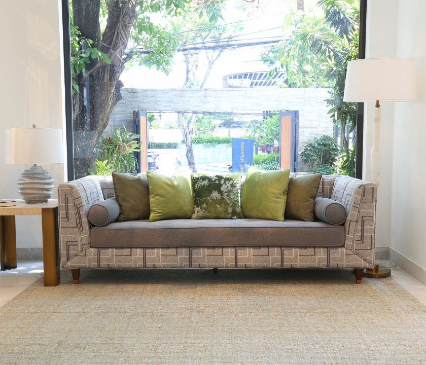 Bộ gối tựa được bố trí khéo léo, tạo điểm nhấn sống động và hài hòa, hoàn thiện vẻ đẹp tổng thể cho không gian nội thất.