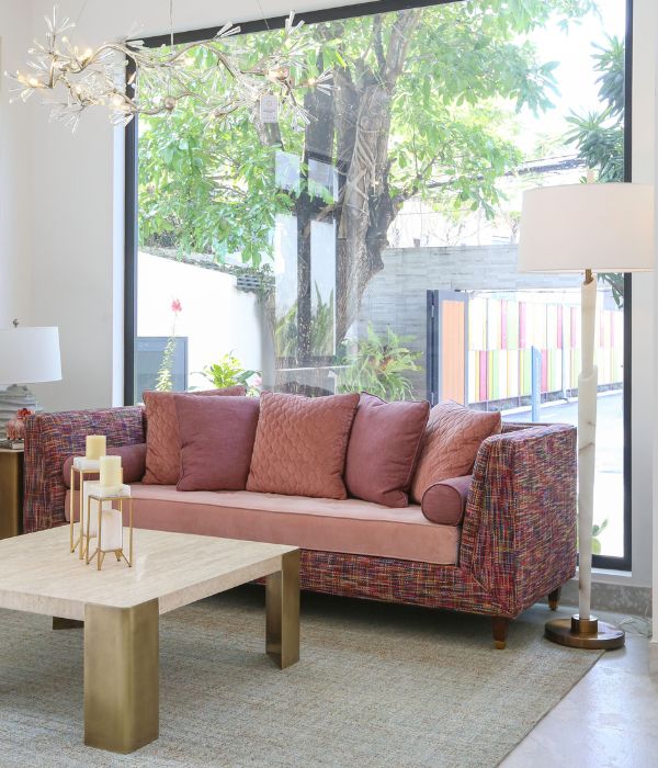 Bộ gối tựa được bố trí khéo léo, tạo điểm nhấn sống động và hài hòa, hoàn thiện vẻ đẹp tổng thể cho không gian nội thất.